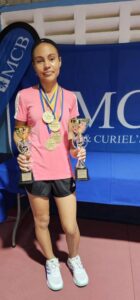 De 14-jarige Mikhaela Boekhoudt heeft iets gepresteerd wat nog nooit eerder op Curaçao is gebeurd. Tijdens het eilandkampioenschap tafeltennis 2025 won ze vier keer op één dag: in de jeugdcategorie, dames enkel, damesdubbel én gemengd dubbel. En dat terwijl ze officieel nog bij de jeugd hoort.