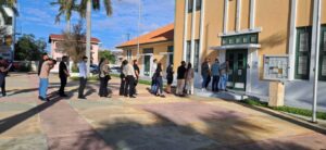 Mensen stonden buiten te wachten voor het gerecht. Foto’s Melissa Stamper.